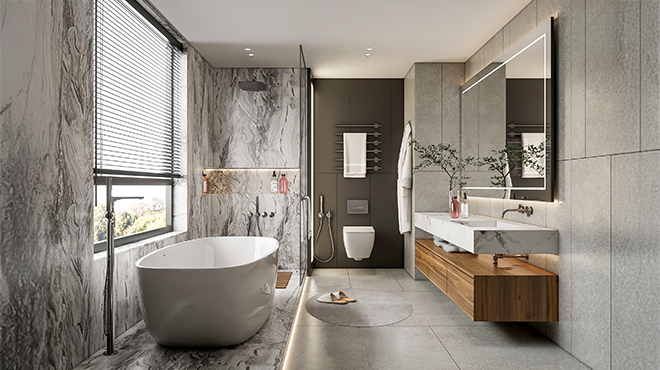 Wskazówka: Jeśli marzysz o pięknym wzorze w łazience, rozważ zastosowanie [fototapety z motywem wodoodpornym] w strefie poza bezpośrednim kontaktem z wodą, np. za lustrem.