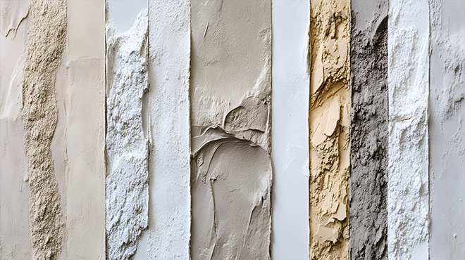 ➤ "Piasek" lub "Piaskowe wydmy": Zawiera w składzie drobny piasek kwarcowy. Po nałożeniu specjalnymi technikami na ścianie tworzą się wzory przypominające piaszczyste wydmy lub wiry. Tworzy ciekawy, lekko szorstki relief.