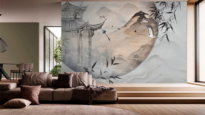 - Żurawie i Czaple (Styl Japoński): Majestatycznie brodzące żurawie w mgle lub lecące na tle wschodzącego słońca to klasyka gatunku dla stylu Japońskiego (oraz modnego Japandi) i Orientalnego. Fototapety w ptaki z tego nurtu są niezwykle eleganckie i wprowadzają do salonu atmosferę głębokiego Zen.
